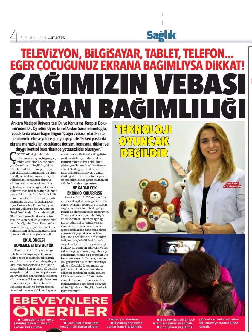 09 ARALIK 2023 TARİHİNDE HÜRRİYET GAZETESİ İLE EKRAN BAĞIMLIĞI HAKKINDA YAPILAN RÖPORTAJIMI İNTERNET VE YAZILI BASINDA YERİNİ ALDI. HÜRRİYET GAZETESİNİN SİTESİNDEN VE BURADAN YAZININ İÇERİĞİNİ OKUYABİLİRSİNİZ.
